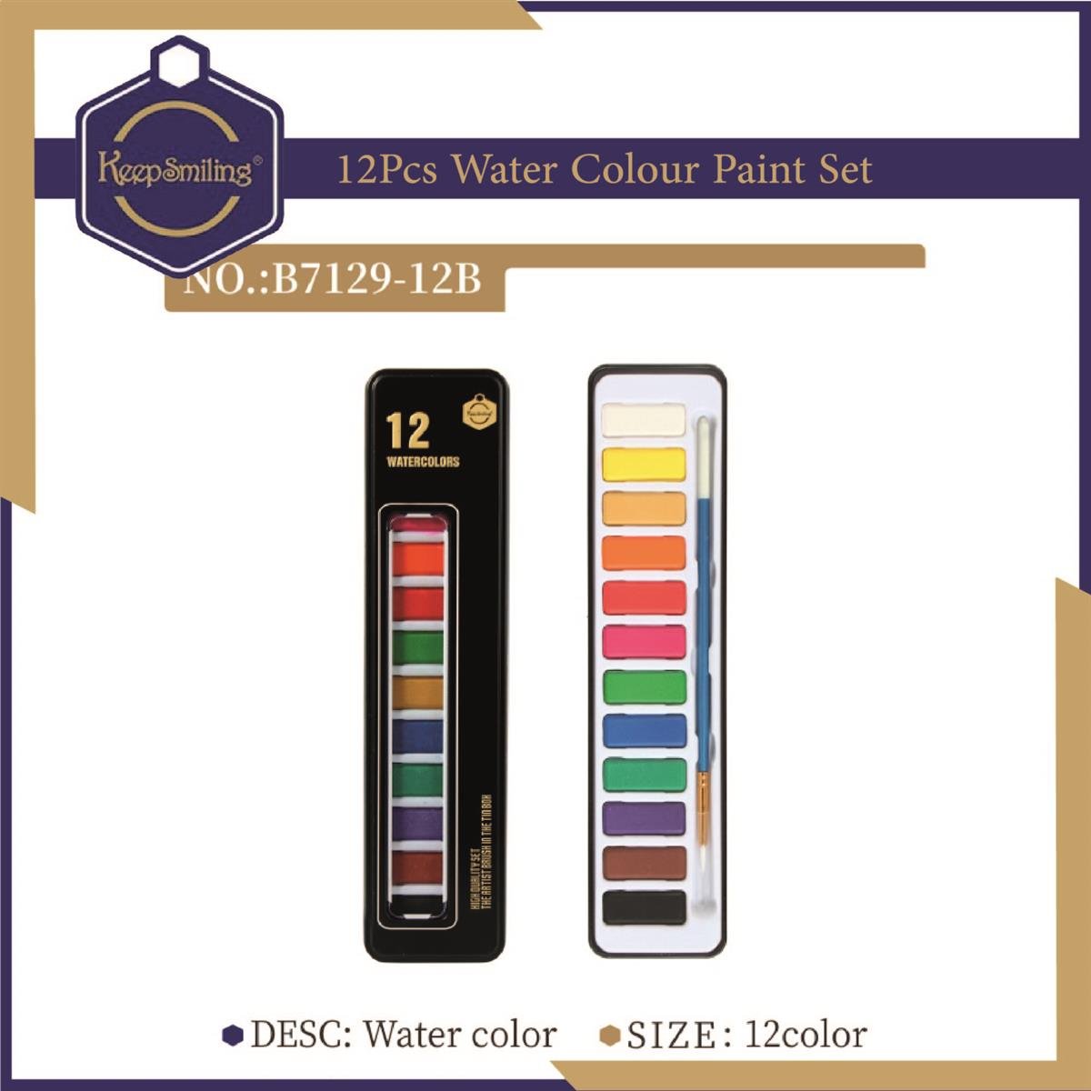 Keep Smiling 7129-Water Color Series comes in Aluminium Tin Pack has 12,24 Bright colours and has great water solubility. Colour can be blended together. 1 Free brush is included. Easy to use. Suitable for starters. Safety quality. Available in 12,24 assorted colours
